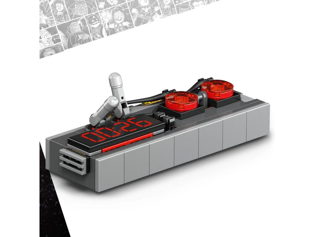 • Kolekcjonerska figurka LEGO Marvel - Groot ma kostium Ravagera stworzony przez Rocketa oraz trzyma detonator z dwoma przyciskami i dwiema dźwigniami.