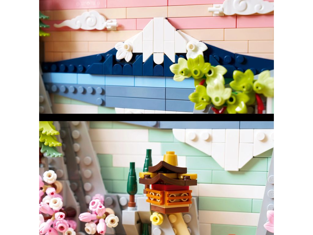 Szczegóły klocków LEGO 31218 ART Japoński krajobraz z kwitnącą wiśnią