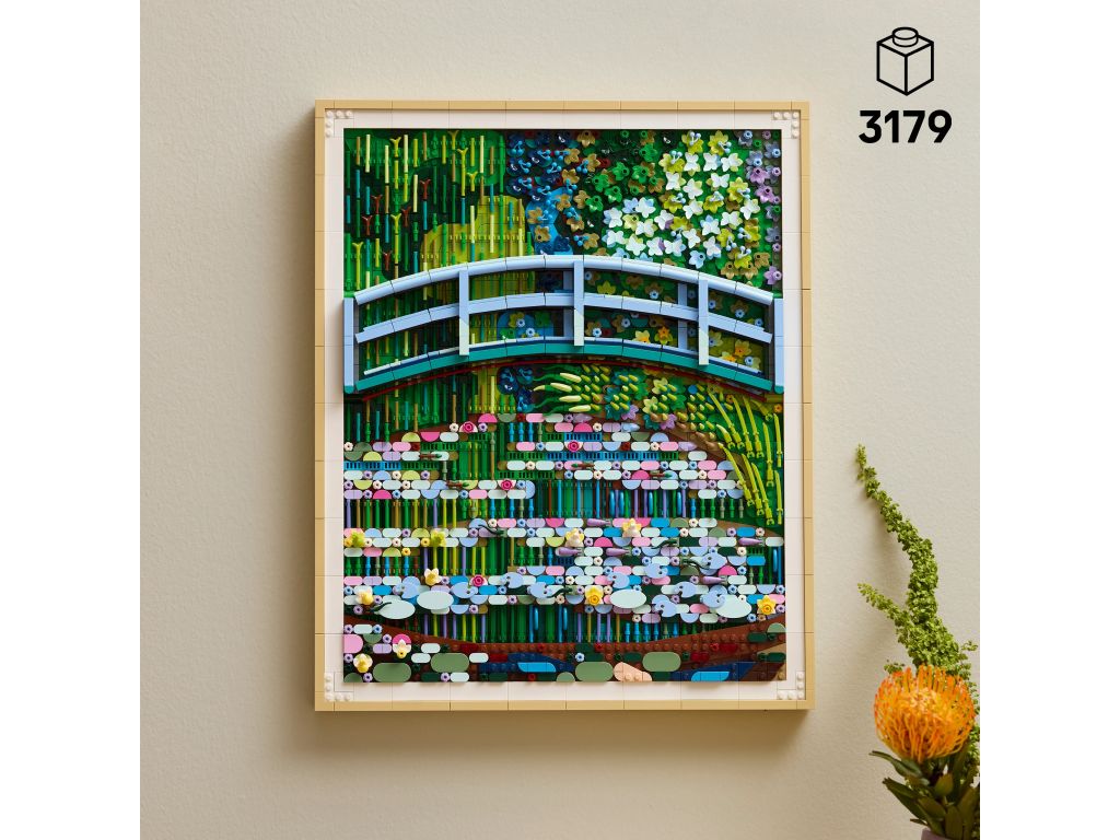 Zbudowana z 3179 elementów interpretacja dzieła oddaje bogactwo faktur i charakterystyczny styl impresjonistyczny artysty. W kreatywny sposób wykorzystano klasyczne elementy LEGO® do przedstawienia mostu, drzew i lilii wodnych z ogrodu w Giverny — miejsca, o które Monet dbał przez całe życie i które stało się inspiracją dla jego najsłynniejszych obrazów.