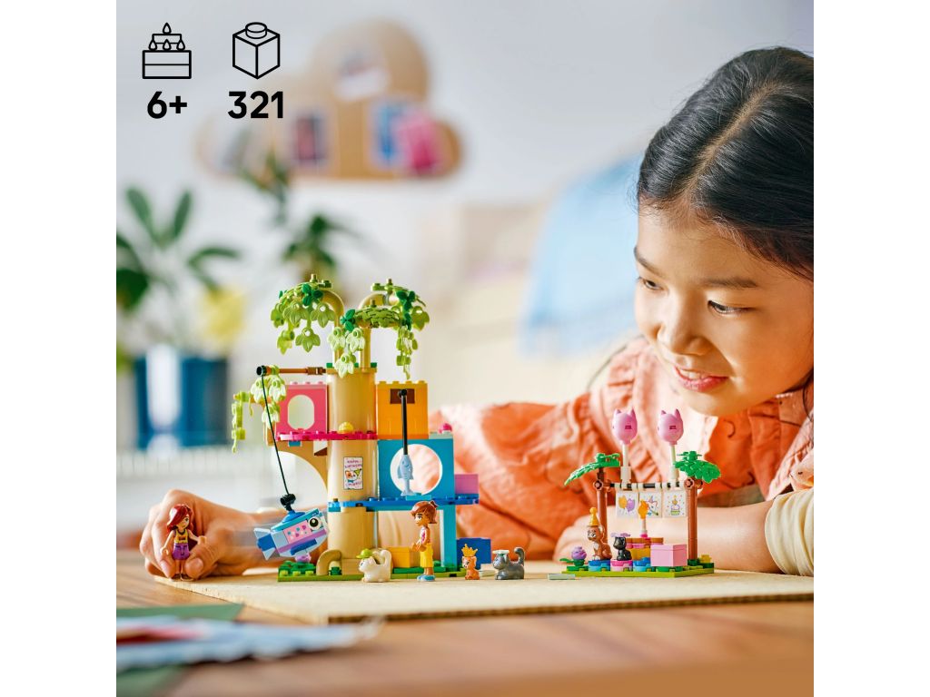 • Zestaw konstrukcyjny dla małych miłośników kotów — ten zestaw LEGO® Friends Kocie przyjęcie urodzinowe i domek na drzewie dla dziewczynek i chłopców w wieku od sześciu lat zawiera dwie minilaleczki i pięć figurek kotów, co pozwala na twórczą zabawę
