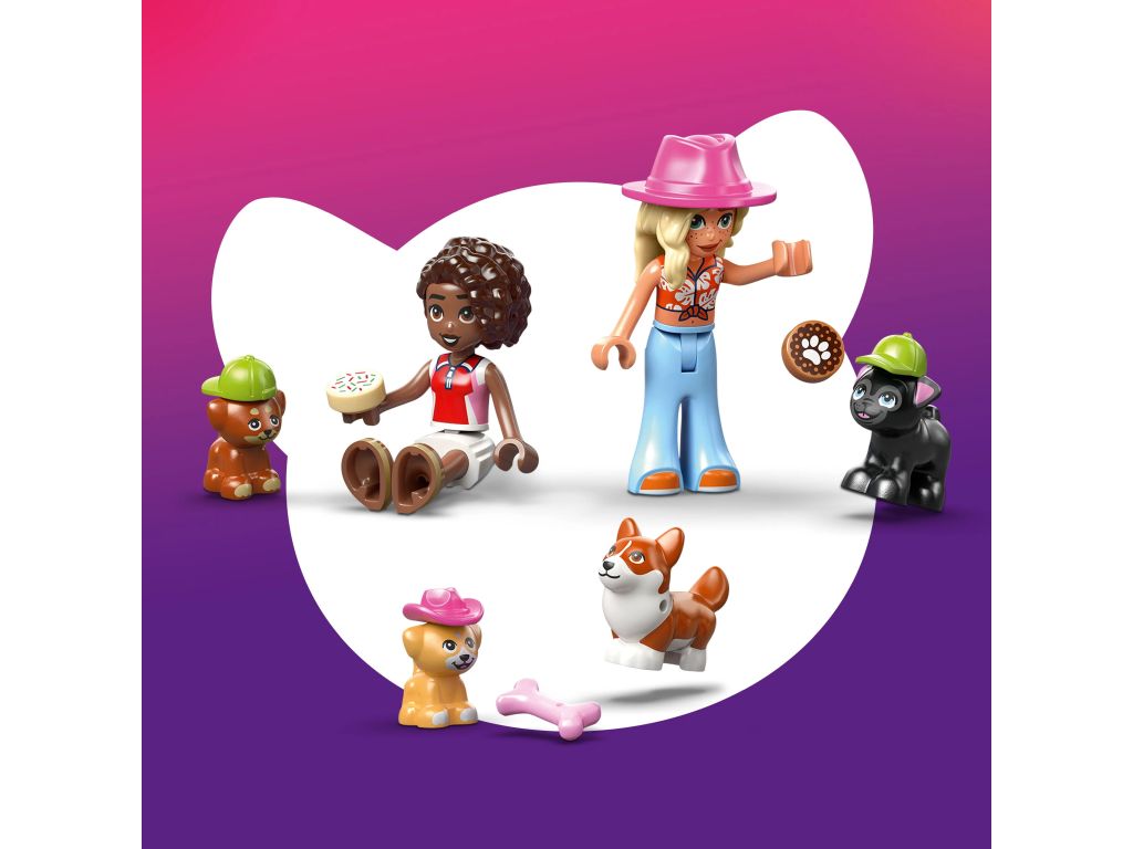 LEGO Friends Piekarnia z psimi przysmakami, klocki dla dzieci z 2 minilaleczkami, 4 pieskami i transporterem, zabawka dla 6-latki i pomysł na prezent dla dziewczynek i chłopców na urodziny 42677