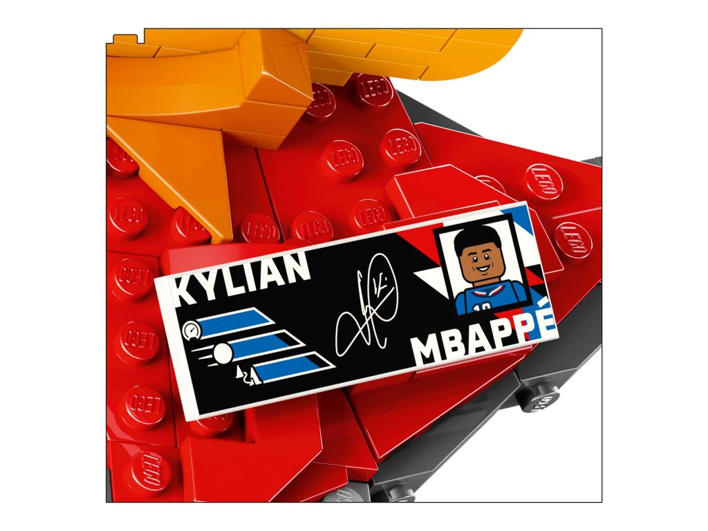 Fani piłki nożnej poczują się jak mistrzowie, tworząc ten kolekcjonerski model LEGO poświęcony Kylianowi Mbappé. Podstawa ma kształt jego inicjału i jest utrzymana w barwach reprezentacji Francji, a model zdobi duży numer 10, czyli jego numer na koszulce. Całość modelu uzupełnia minifigurka Mbappé w pozycji podczas strzelania bramki oraz kolekcjonerska tabliczka z jego autografem i statystykami zawodnika. Po zbudowaniu ta pamiątka sportowa stanie się piłkarską dekoracją i ozdobą na półkę lub biurko, którą fani mogą się z dumą pochwalić.