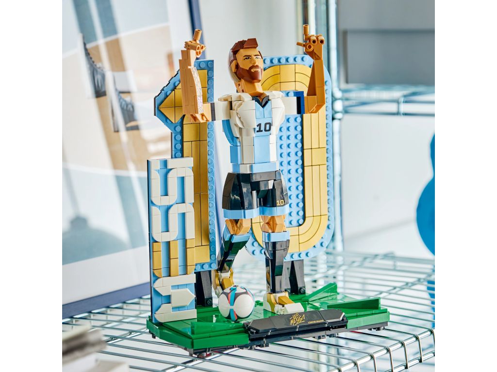 Fani mogą podziwiać legendarnego Messiego, budując ten szczegółowy model LEGO i wybierając spośród dwóch opcji budowania. Figurka piłkarza w charakterystycznej pozie zwycięstwa wskazuje palcem w stronę nieba po strzeleniu gola, natomiast druga pozycja przedstawia Messiego dryblującego piłkę na boisku. Zestaw LEGO dla nastolatka zawiera również duży numer 10, napis MESSI, tabliczkę z imieniem oraz element z piłką nożną. Po zbudowaniu ta LEGO figurka stanie się pamiątką z meczu i dekoracją sportową - sprawdzi się jako ozdoba na półkę lub biurko, którą fani mogą z dumą się pochwalić.