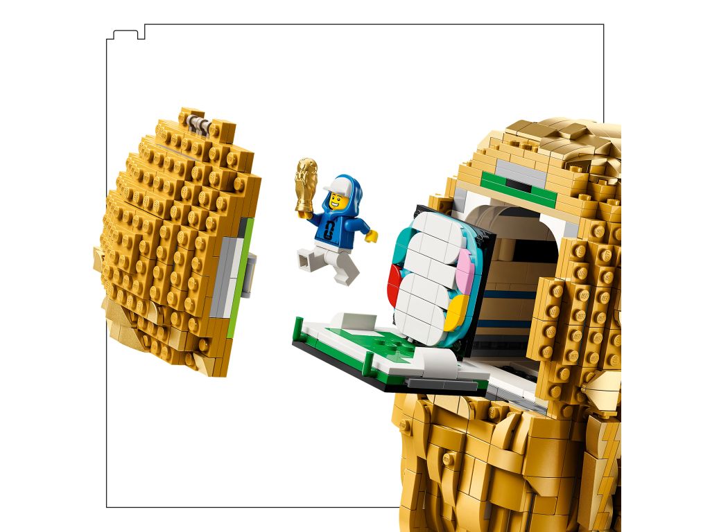 Po zakończonym budowaniu puchar sprawdzi się jako piłkarska dekoracja pokoju dziecięcego lub ozdoba na biurko fana futbolu. To także świetny pomysł na prezent urodzinowy lub inną okazję dla chłopca, dziewczynki i miłośników piłki nożnej. Zestaw jest dostępny również w aplikacji LEGO Builder, gdzie można śledzić postępy i obracać model w 3D. Zestaw konstrukcyjny składa się z 2842 elementów.