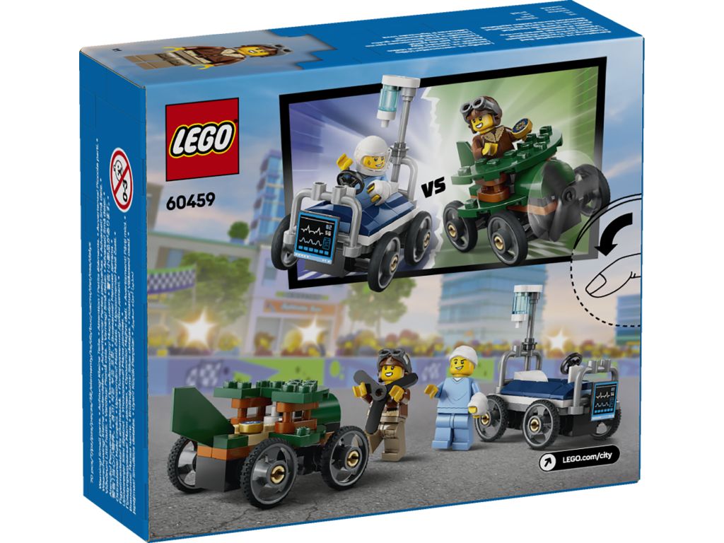 LEGO® City Zestaw wyścigówek: samolot kontra łóżko szpitalne gwarantuje emocjonujące wyścigi. Zawiera dwie wyścigówki z pilotem i pacjentem.