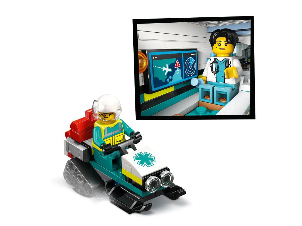 Podaruj małemu bohaterowi zestaw LEGO® City z samolotem, skuterem śnieżnym, akcesoriami do udzielania pierwszej pomocy i czterema minifigurkami.