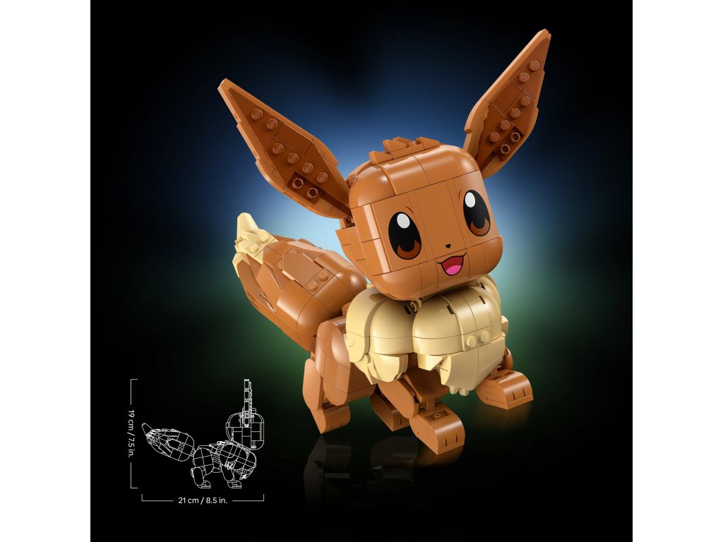 Figurka Eevee jest rozpoznawalna dzięki uroczemu pyszczkowi, ruchomym uszom, łapkom i ogonowi, który można ustawić w wybranym kącie. Dzięki ruchomym kończynom i głowie model Pokémona można ustawić w autentycznych, dynamicznych pozycjach, nadając mu wygląd gotowego do akcji Eevee. To idealny zestaw dla dorosłych, którzy cenią kreatywne budowanie i kolekcjonowanie.