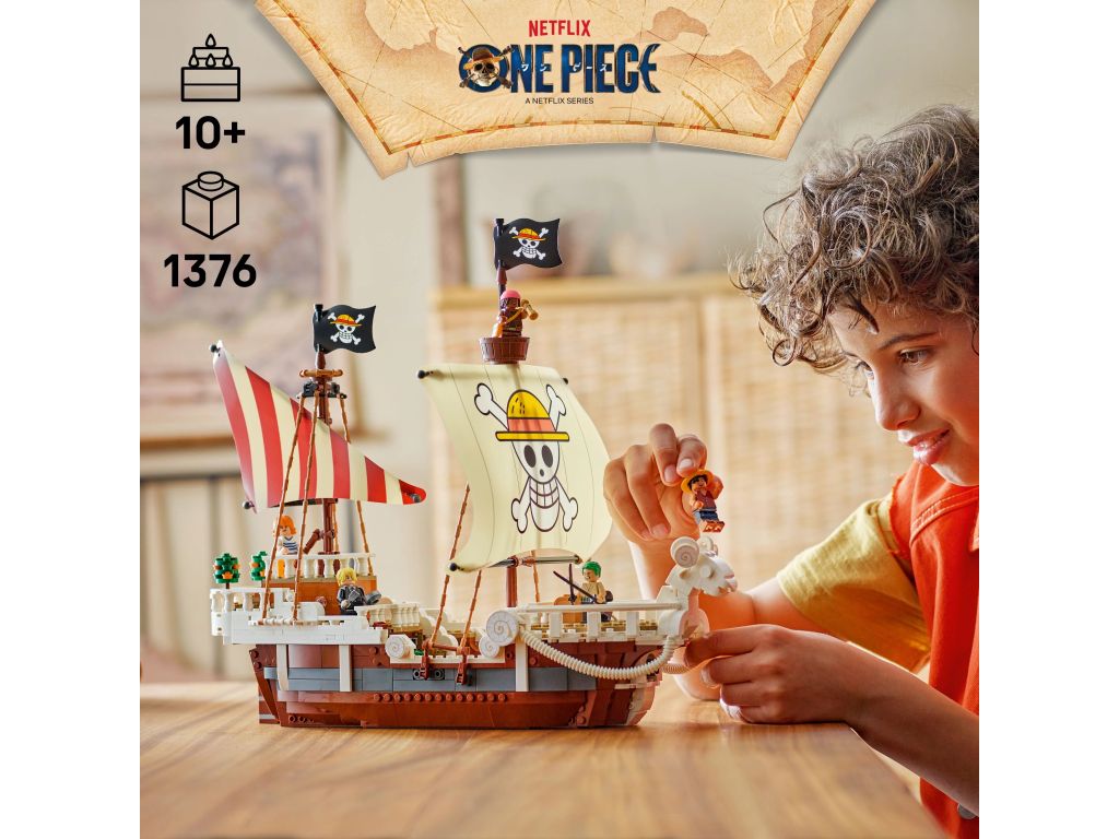 • Statek piracki na prezent — ten zestaw LEGO® ONE PIECE do zbudowania, zabawy i ozdoby to świetny prezent dla miłośników anime, fanów statków pirackich i serialu live action ONE PIECE platformy Netflix