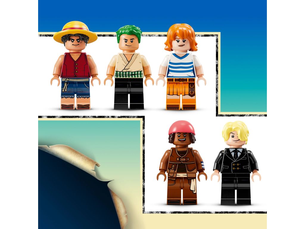 • Minifigurki LEGO® ONE PIECE — zestaw zawiera autentycznie szczegółowe minifigurki Monkey D. Luffy’ego, Zoro, Nami, Usopa i Sanjiego