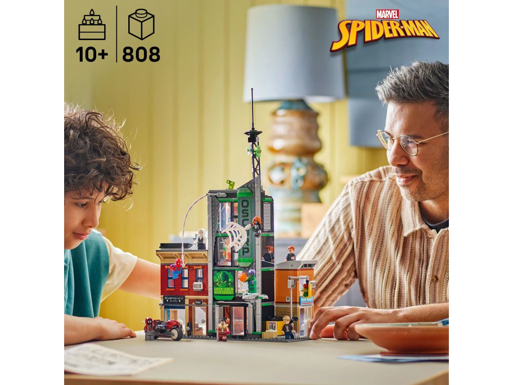 • Kolekcjonerski zestaw konstrukcyjny ze Spider-Manem — Spider-Man i Oscorp to wysokiej jakości zabawka LEGO® ǀ Marvel dla chłopców, dziewczynek i fanów superbohaterów w wieku od 10 lat