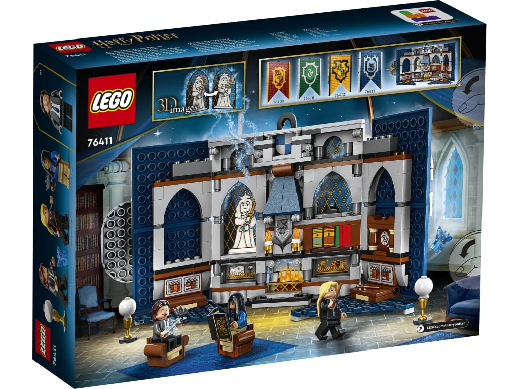 • LEGO® Harry Potter™ Flaga Ravenclawu™ (76411) – ta flaga do zbudowania pozwoli dzieciom pokazać swoją wierność wobec Rawenclawu. Zawieś ją lub otwórz, by bawić się w szczegółowym pokoju wspólnym
