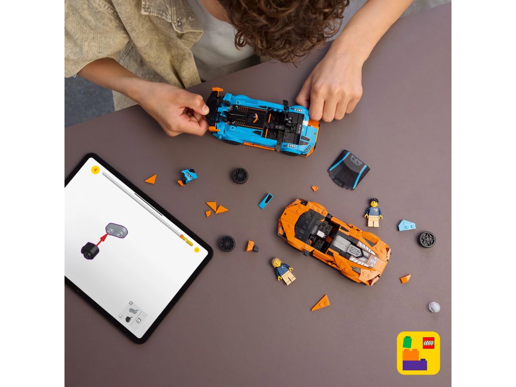 Niesamowite wyścigi czekają na automaniaków w tym podwójnym zestawie LEGO® Speed Champions Lamborghini! Zbuduj, baw się i ustaw na półce pomarańczowe Lamborghini Revuelto i niebieskie Lamborghini Huracán STO. Każdy pojazd rodem z Sant'Agata Bolognese jest pełen realistycznych detali wzorowanych na prawdziwych autach. Do każdego dodano też minifigurkę kierowcy do odgrywania wyścigów.