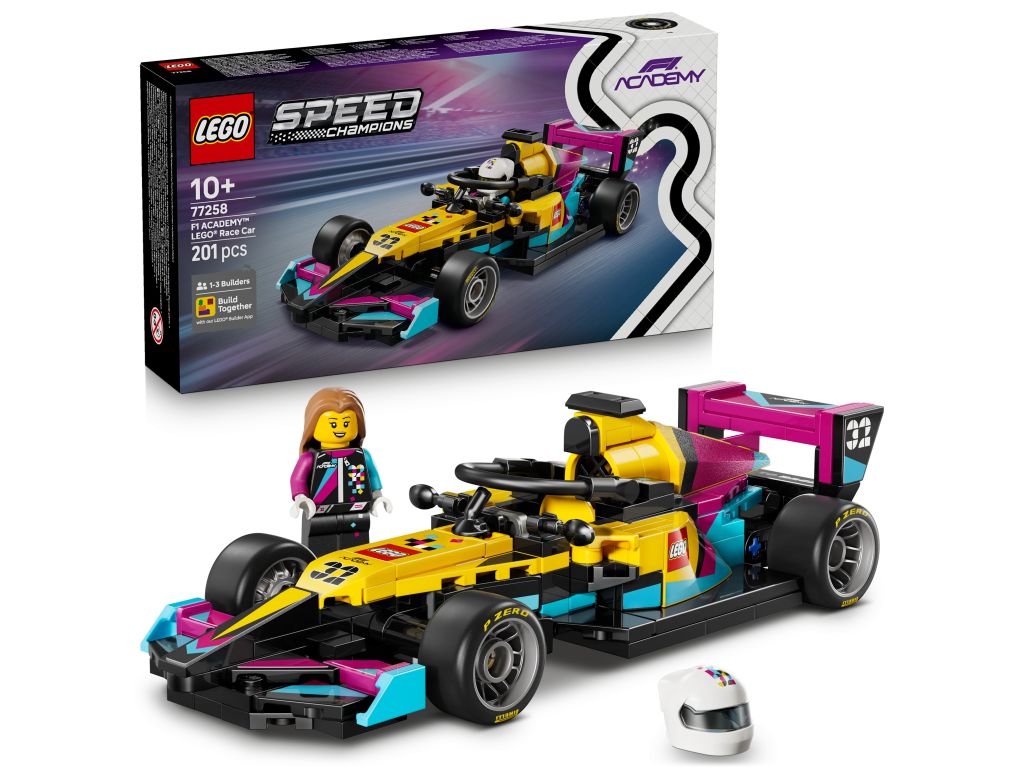 W 2026 roku Grupa LEGO dołącza do F1 ACADEMY z własnym bolidem! Dzięki zestawowi LEGO Speed Champions Bolid F1 ACADEMY LEGO (77258) dzieci od 10 lat mogą zbudować własny model auta inspirowany samochodem F1 ACADEMY. Zestaw to świetna zabawka konstrukcyjna do zabawy i ekspozycji, zawierająca liczne detale prawdziwego bolidu, takie jak kokpit, tylne skrzydło i opony z napisem „Pirelli”.