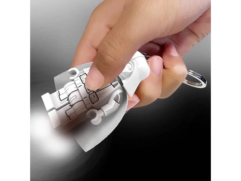 Latarka LED z serii LEGO Star Wars. Figurka ma wysokość około 7 cm, na środku ma przycisk pozwalający zapalić diody znajdujące się w nogach figurki.