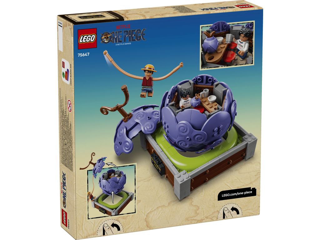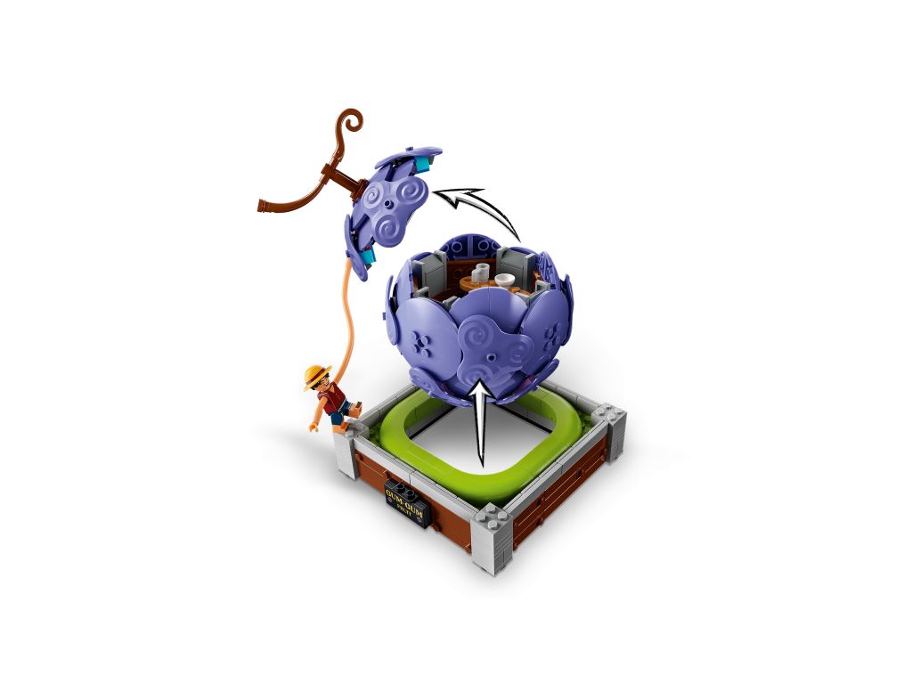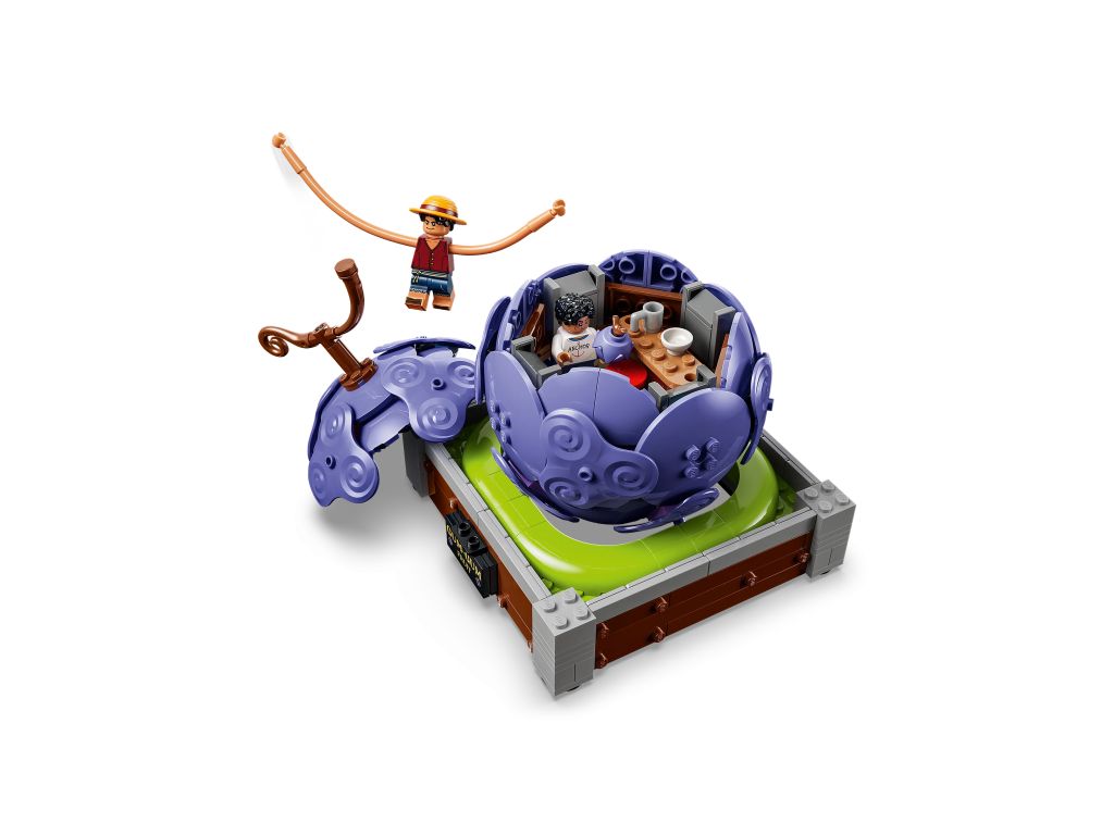 - Dwie minifigurki - do gum-gumowocu dołączona jest minifigurka Monkey D. Luffy'ego z długimi, ruchomymi ramionami, które można wyciągać w prawo lub w lewo. W środku znajduje się też scena, w której młody Luffy odkrywa gum-gumowoc