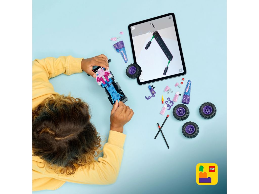 Ciekawy sposób na budowanie - aplikacja LEGO Builder poprowadzi dzieci przez intuicyjne budowanie. Mogą w niej zapisywać zestawy, śledzić postępy oraz przybliżać i obracać model monster trucka dzięki trójwymiarowym instrukcjom