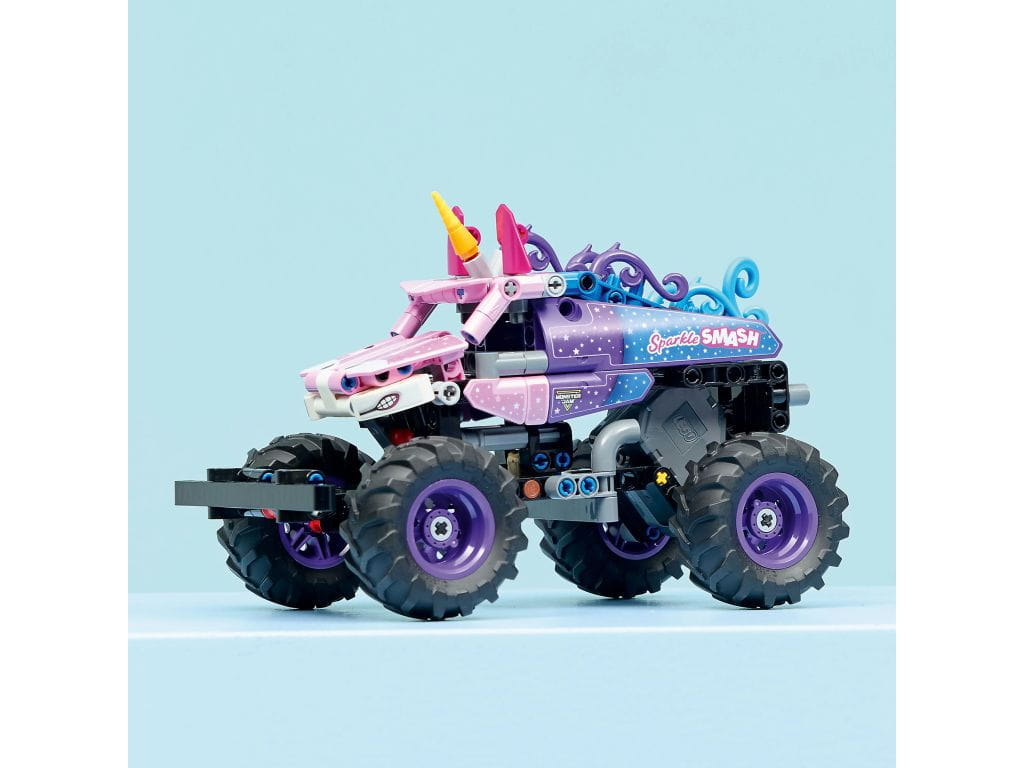 LEGO Technic Monster Jam Sparkle Smash z napędem typu pull-back, jednorożcowy monster truck dla dziewczynki, zabawka dla dzieci i pomysł na prezent dla dziewczynek i chłopców w wieku od 7 lat 42220