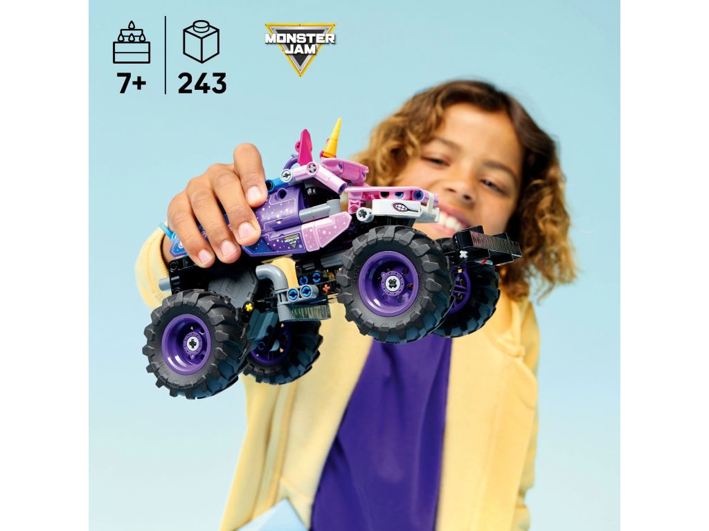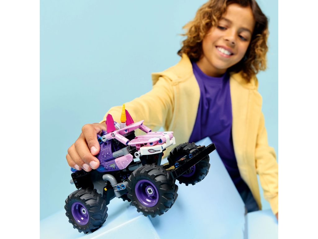 Zabawka dla dzieci Monster Jam - zestaw LEGO Technic Monster Jam Sparkle Smash z napędem typu pull-back (42220) to fajna zabawka dla dziewczynki i chłopca od 7 lat, którzy lubią monster trucki i zabawki z jednorożcami